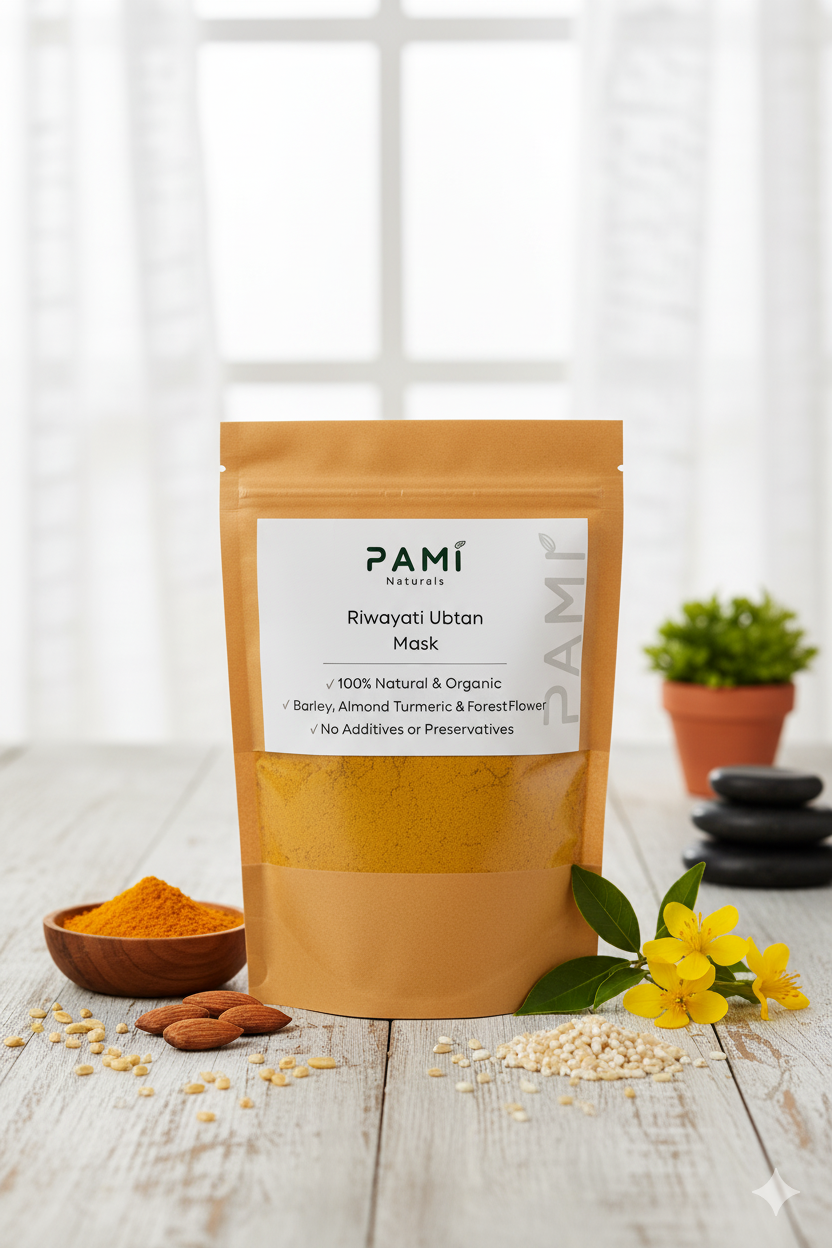 Inspired by timeless beauty rituals, Riwayati Ubtan Mask blends Barley, Almond, Turmeric, and Forest Flower extracts to deeply cleanse, brighten, and refresh your skin.